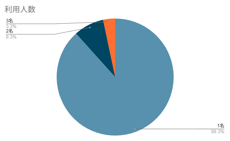 ・利用人数:1人 88.3%、2人 8.3%、3人 3.3%