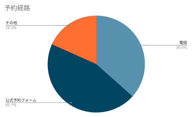 ・予約経路:電話36.6%、公式予約フォーム45.1%、その他 18.3%