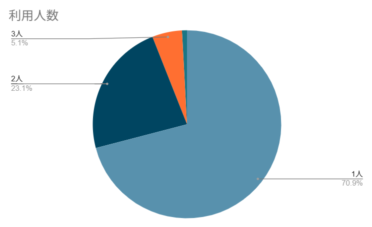 ・利用人数:1人 70.9%、2人 23.1%、3人5.1%、4人以上0.9%