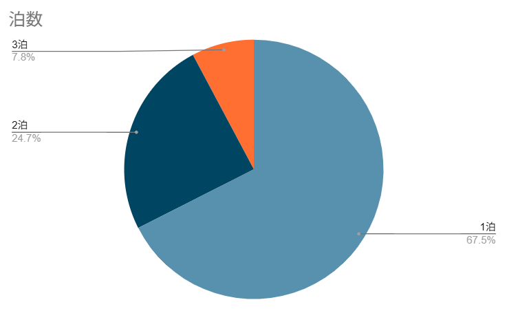 ・泊数:1泊 67.5%、2泊 24.7%、3泊7.8%
